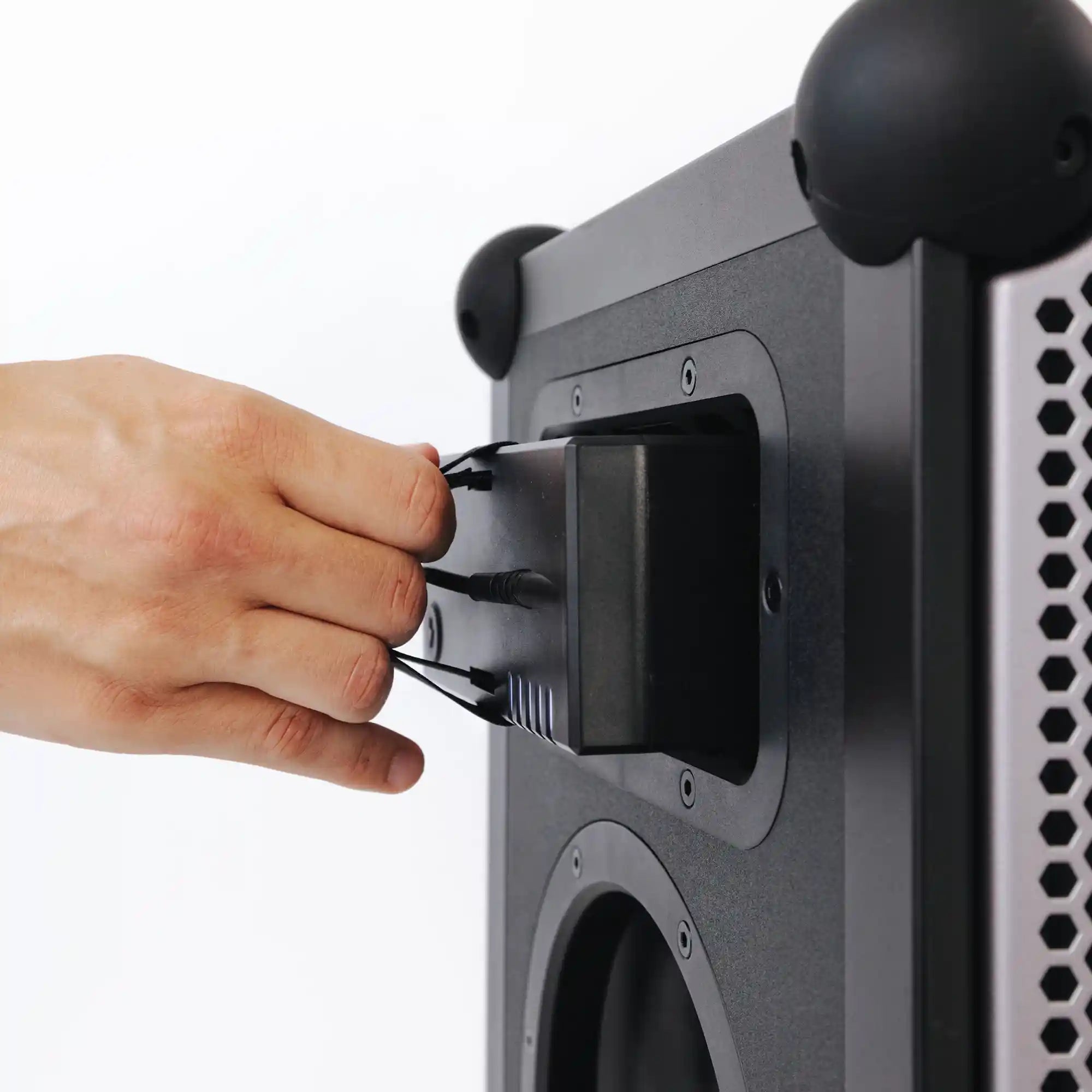 Pretty simple, this. Make sure you turn off your Soundboks and remove The Battery from the speaker.