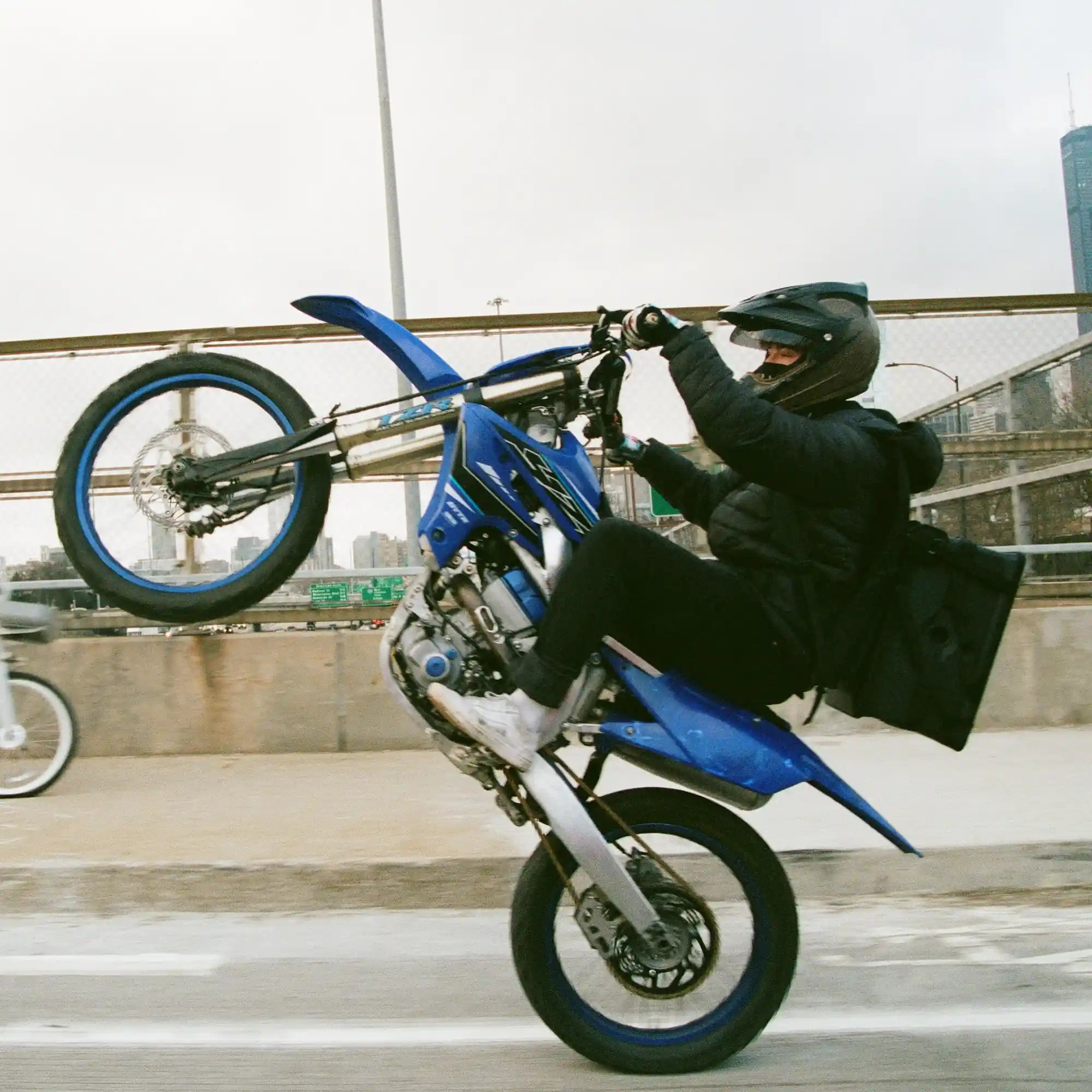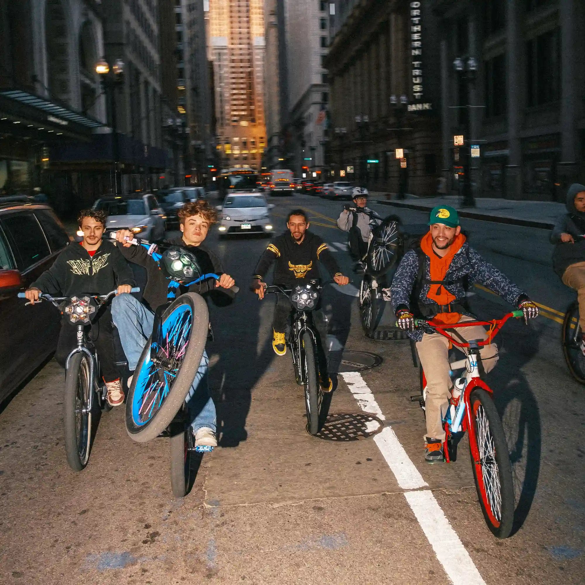 Racing through the streets and pulling mad stunts is exactly what Wheel Up do. This street bike crew wheelie their way through the Windy City, spreading contagious energy in true daredevil style. You could say this squad are cycling’s equivalent of ravers, cutting shapes on two wheels.